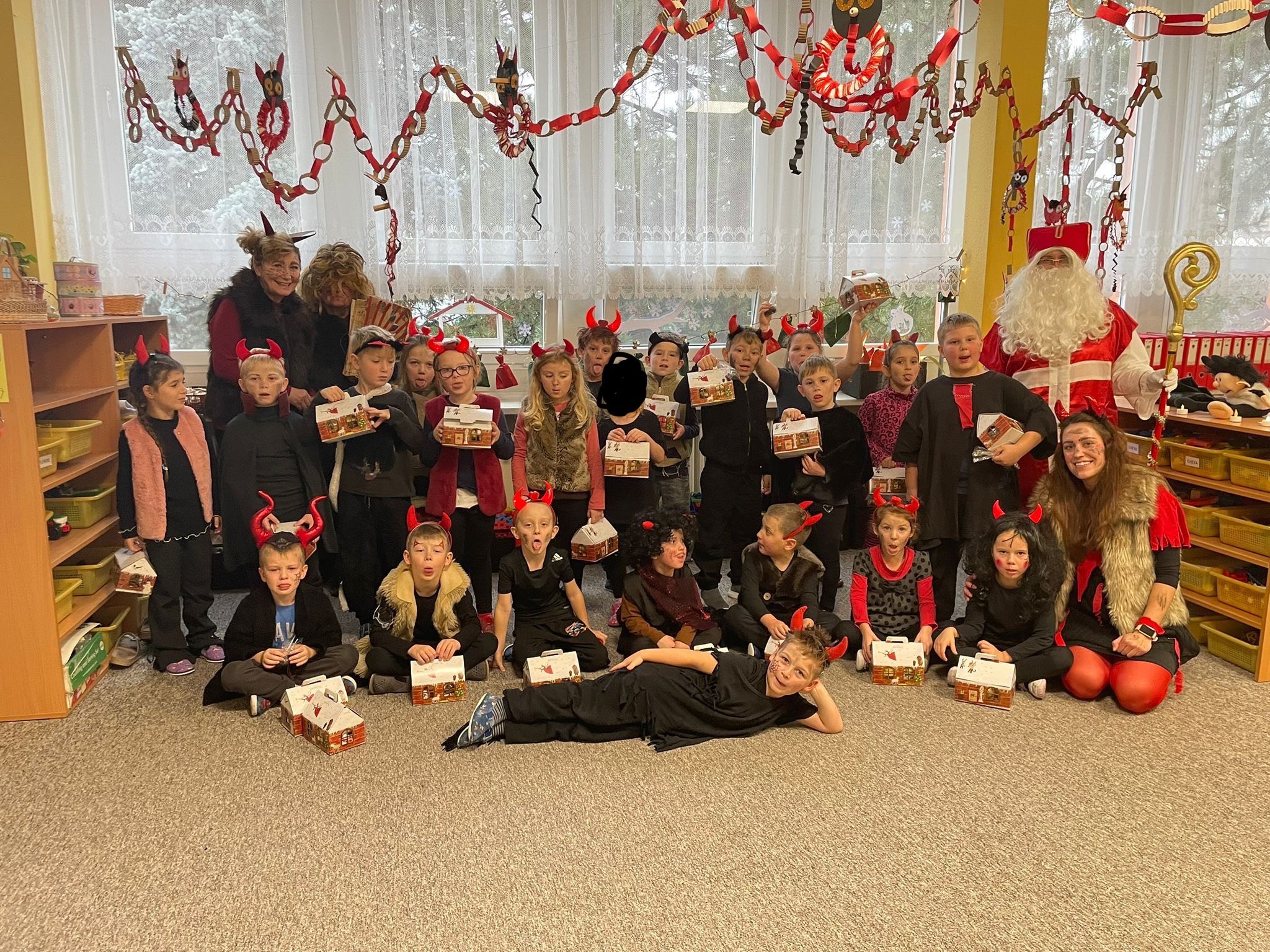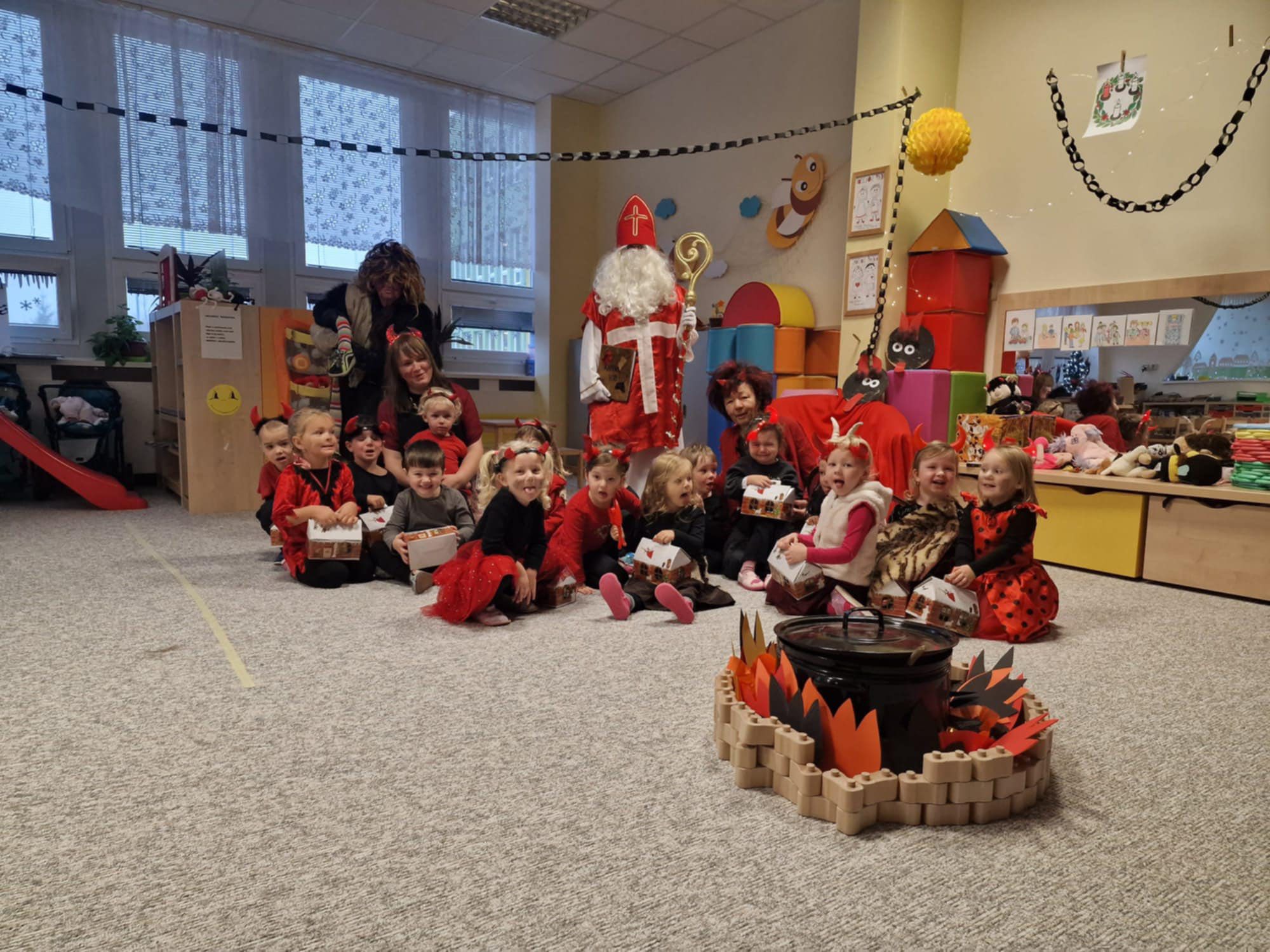 Děti ho statečně přivítaly, zazpívaly mu a přednesly básničky nejen jemu, ale i čertovi, který ho doprovázel. Za svou odvahu a šikovnost si vysloužily bohatou mikulášskou nadílku. Atmosféra byla plná radost